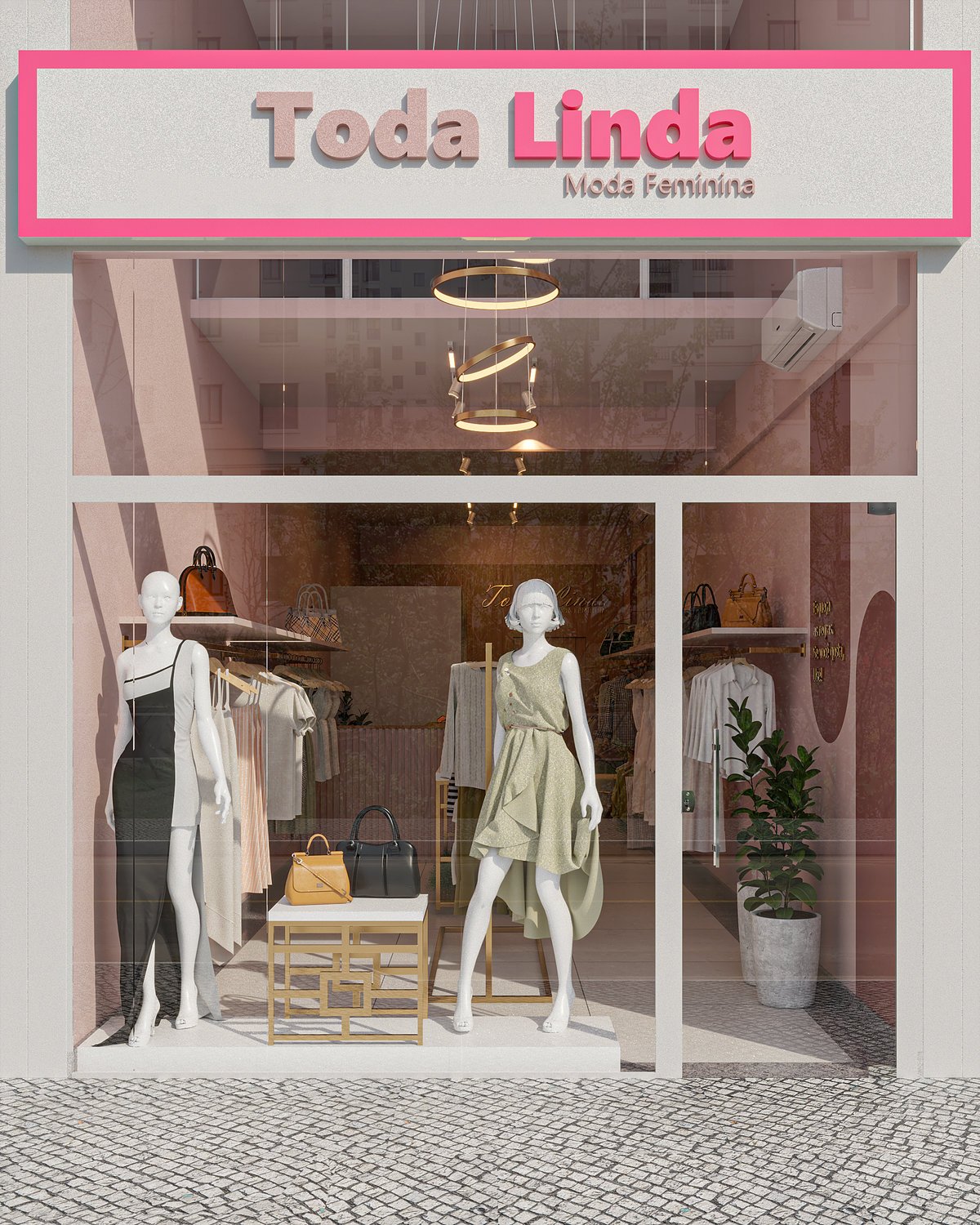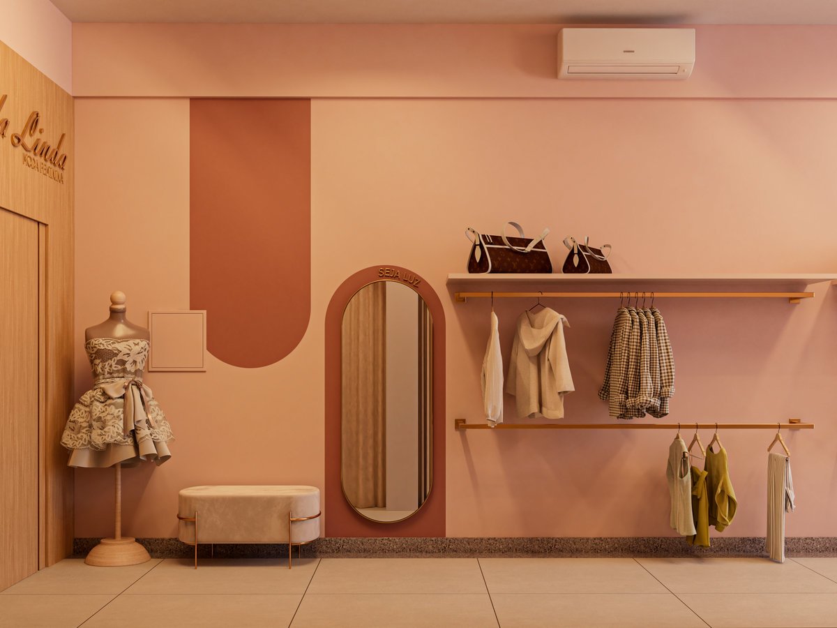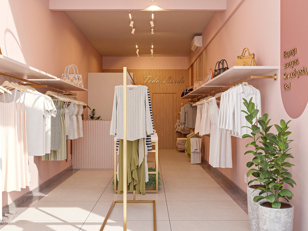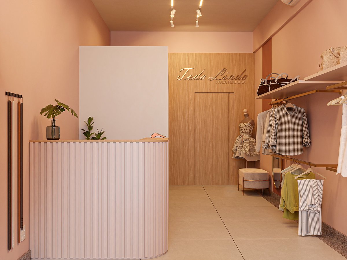 A Loja Toda Linda foi pensada para refletir a essência feminina da marca em um ponto comercial alugado, unindo elegância e praticidade em cada detalhe. O espaço foi planejado para otimizar a área disponível, utilizando tons de rosa suave, dourado e madeira clara, que trazem harmonia e acolhimento. A marcenaria sob medida e o mobiliário em serralheria leve complementam o ambiente, criando uma atmosfera sofisticada e encantadora, onde cada canto convida à beleza e à experiência da marca.